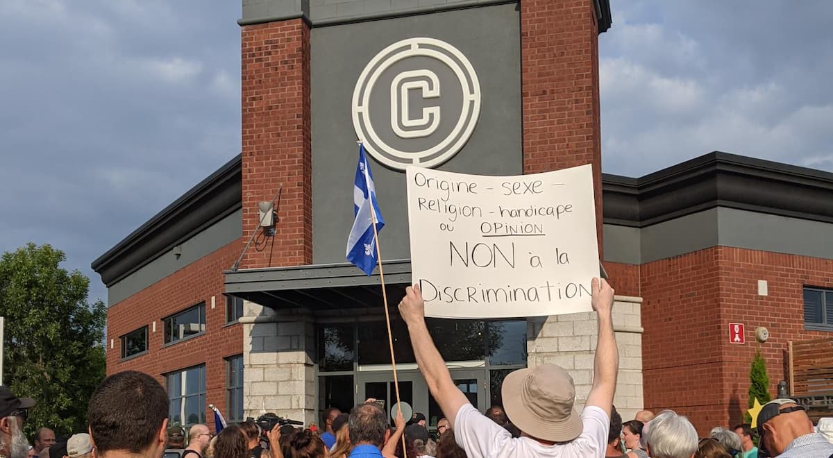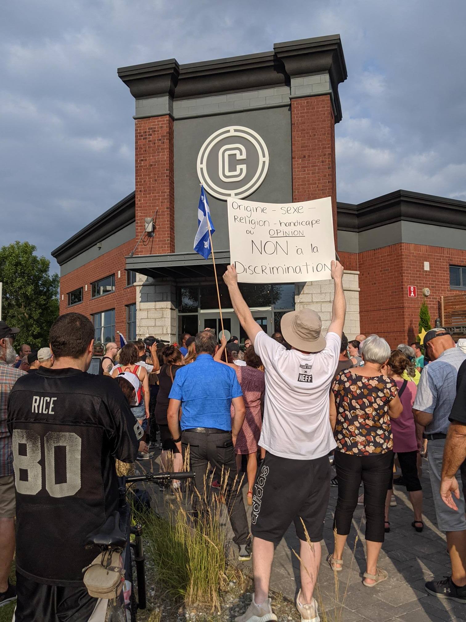Demonstration In Quebec In Front Of A Restaurant Testing A Vaccine Passport